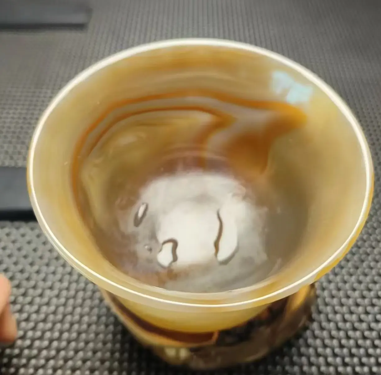 This agate tea bowl is meticulously crafted from pure natural Brazilian agate (commonly known as Ba Yu) and is a masterpiece of modern art creation. The agate itself has naturally formed pictographic patterns, with textures as natural and flexible as flowing water. Colors such as yellow and white interweave to form a unique visual effect. The pure handmade craftsmanship makes every detail show ingenuity. After high – polishing treatment, the surface of the agate is bright and lustrous, and the jadeization effect is good. It is not only a practical tea bowl with a capacity of about 400 milliliters, which can meet daily tea drinking needs, but also a unique art ornament. Placed on a tea table or in a home space, it can add a natural artistic atmosphere to the environment. It is a modern good with both practical and artistic value.
