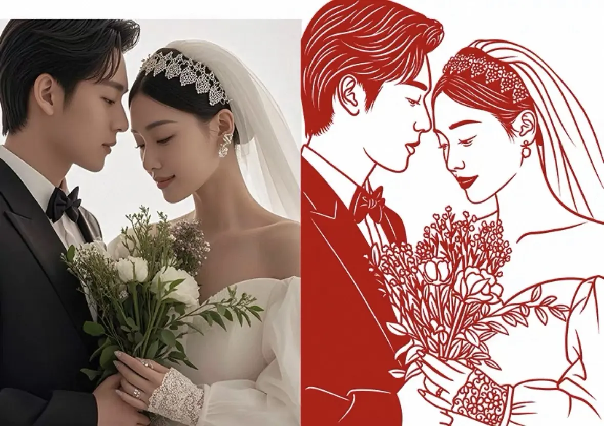 在 WoooArt,我们将你的照片转化为一幅充满东方美学的剪影艺术作品,灵感源自经典的中国剪纸工艺。我们会重新设计照片中的形象,提炼人物的轮廓、姿态与气质,同时保留传统剪纸干净利落、极简优雅的视觉美感。