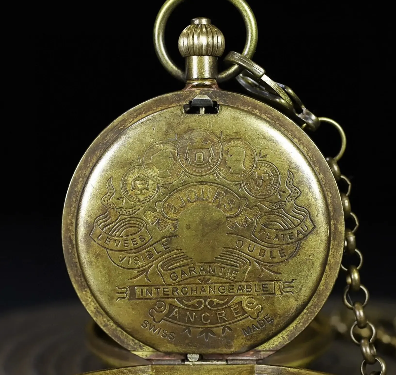 - Product name: Double – opening copper mechanical pocket watch【产品名称:双开黄铜机械怀表】