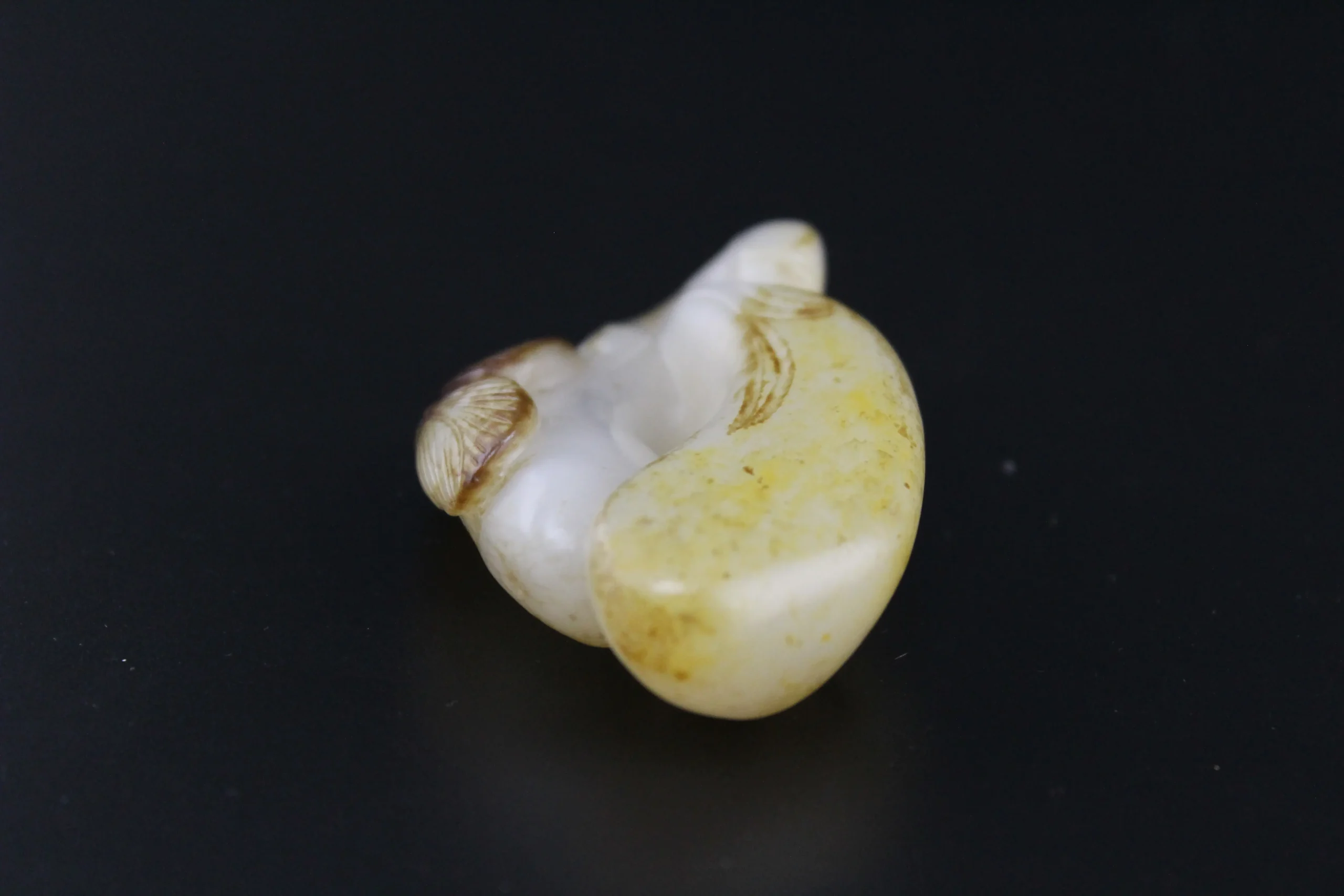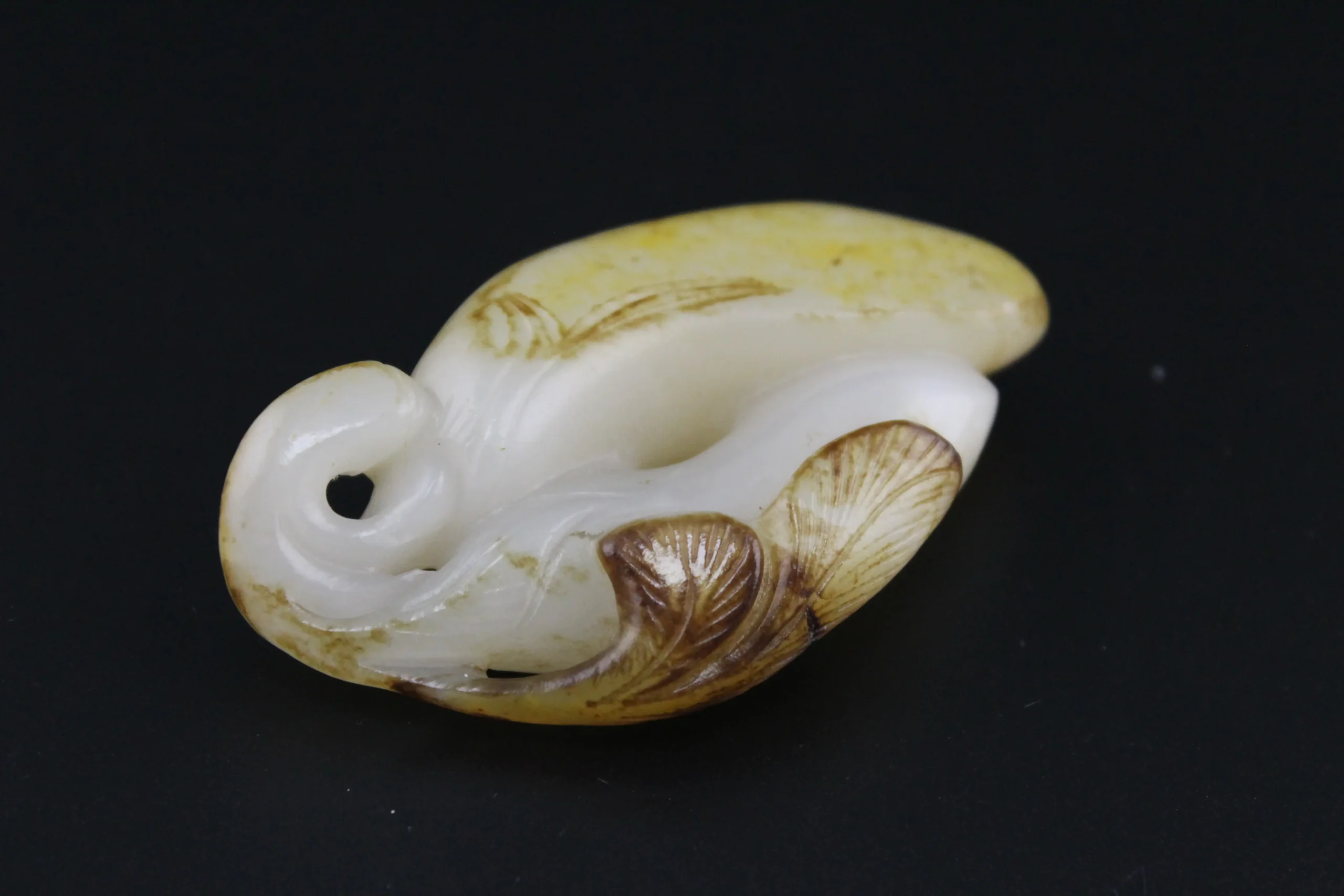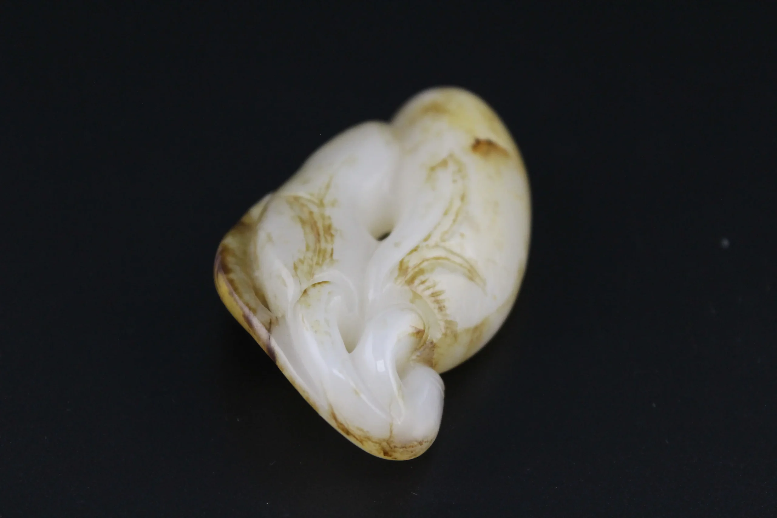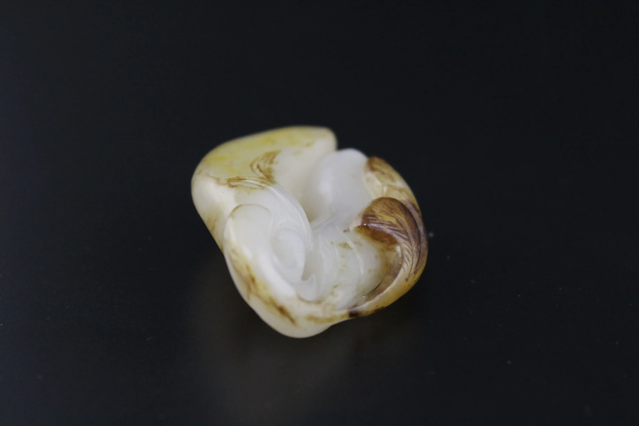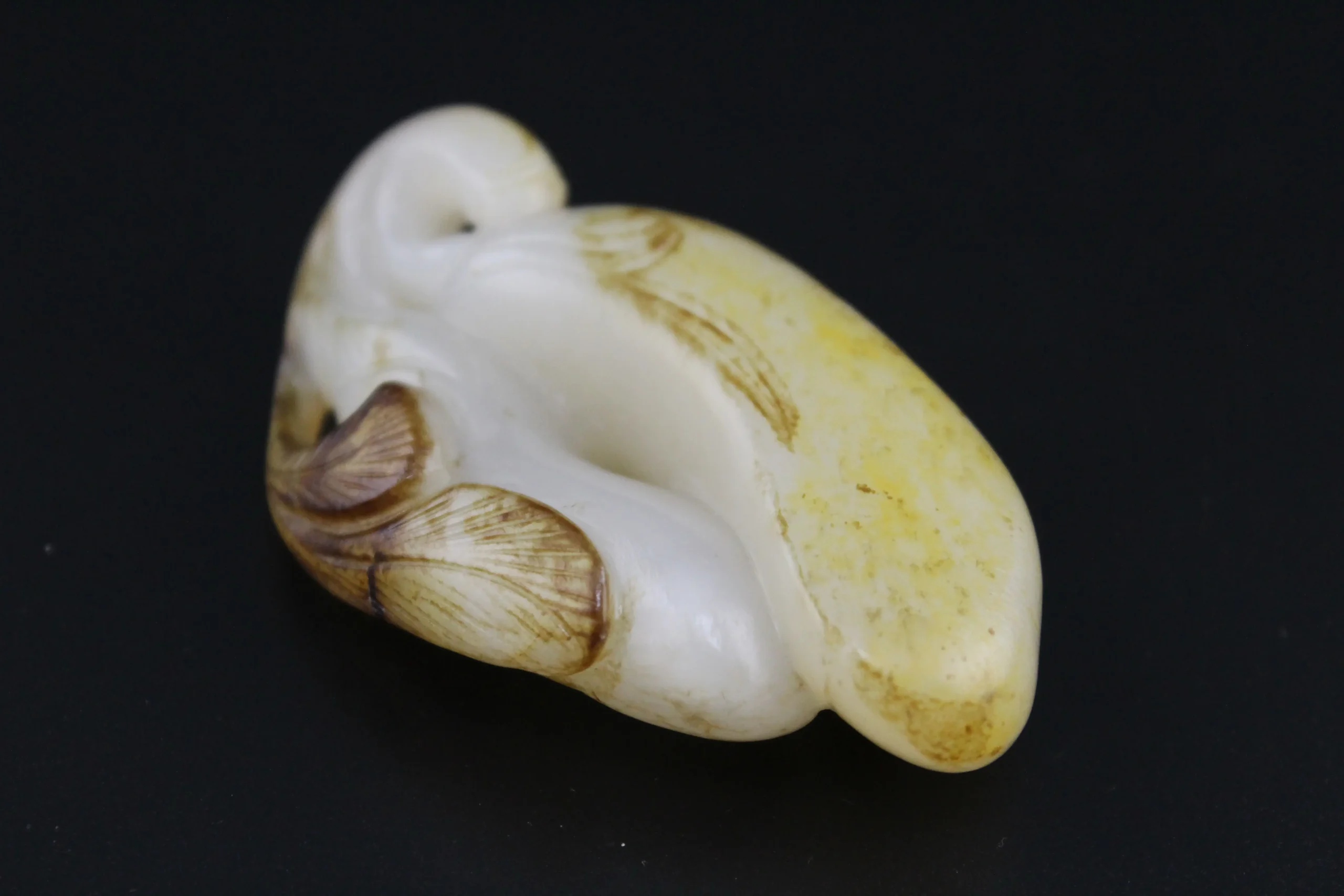 ③ 玉质与工艺 选材以白玉为主,玉色柔和细腻,局部保留天然沁色与色差,随形施艺,不作过度修饰,使作品更显自然生动。沁色分布于果实与边缘处。