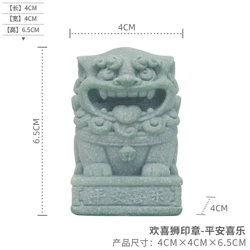 中式仿青砂石小狮子茶宠印章,造型萌趣有威严,材质逼真,可作茶宠、印章与装饰,传递美好寓意,国潮风满满。